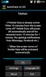 Autodata is a very simple, yet extremly effective app. As soon as the device's screen is OFF, mobile data will be automatically switched off. However, Autodata enables the data every 15 minutes for 1 minute so you don't miss your notifications (you can customize the interval in app settings later).